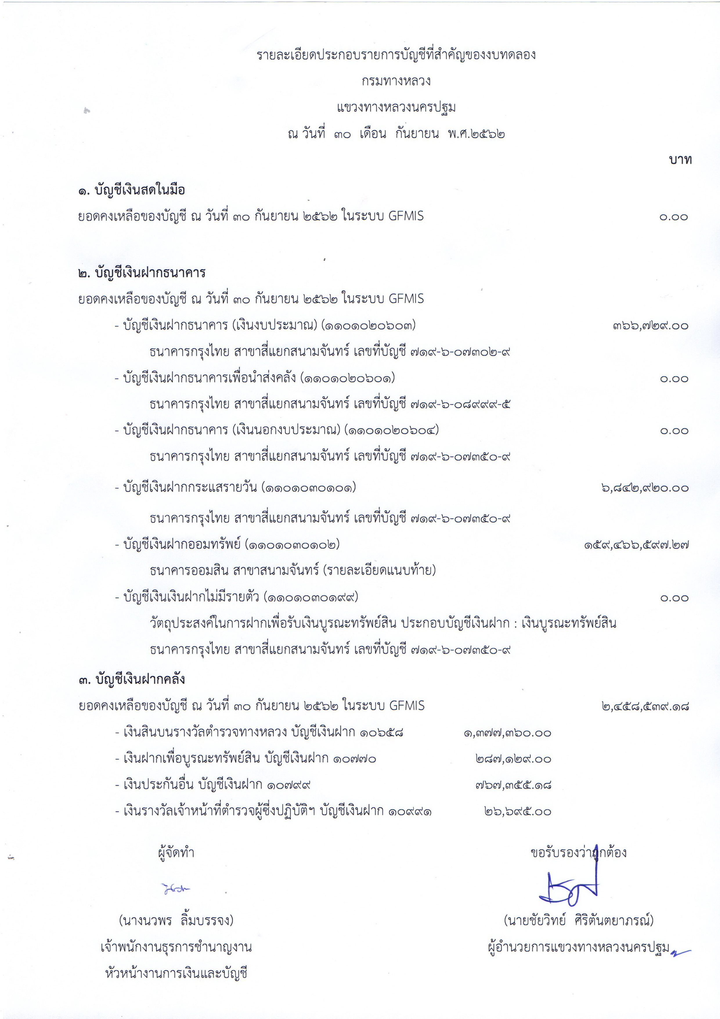 งบทดลอง ประจำเดือนกันยายน 2562 |