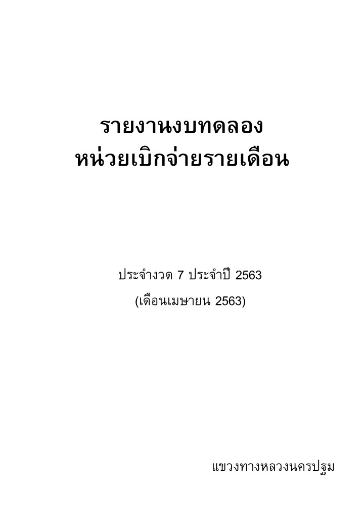 งบทดลอง ประจำเดือนมกราคม 2563 |