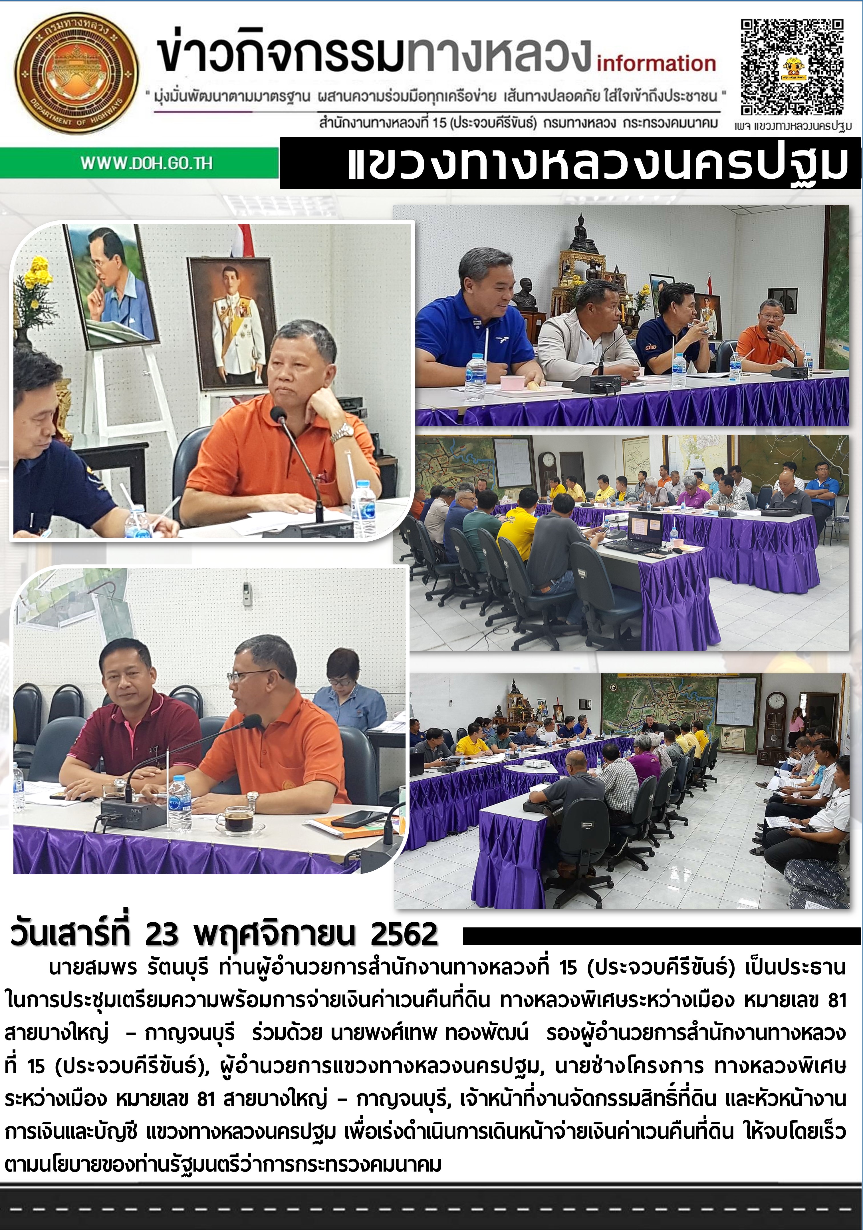 34 23/11/2562 ประชุมเตรียมความพร้อมการจ่ายเงินค่าเวนคืนที่ดิน ทางหลวงพิเศษระหว่างเมือง หมายเลข 81