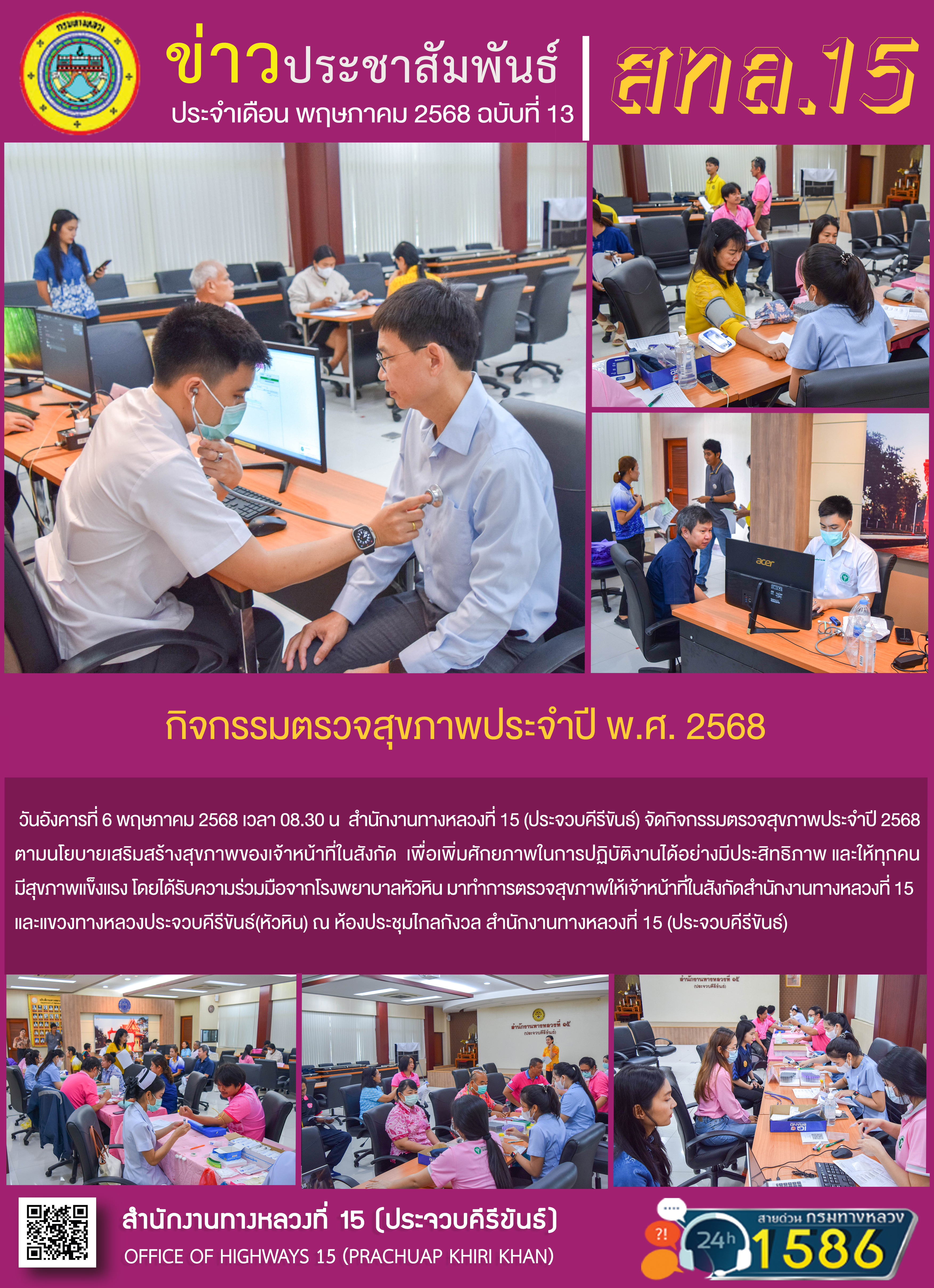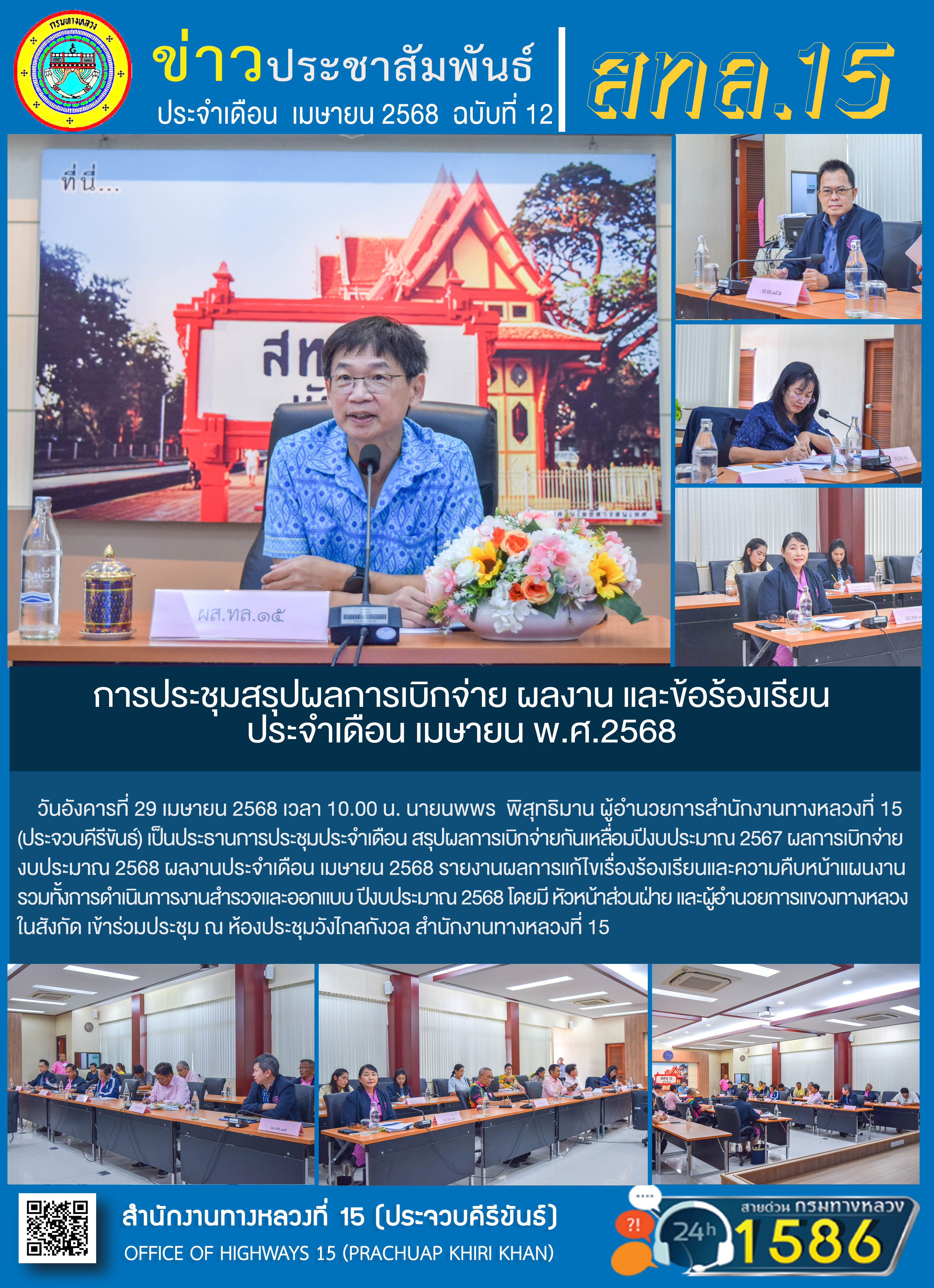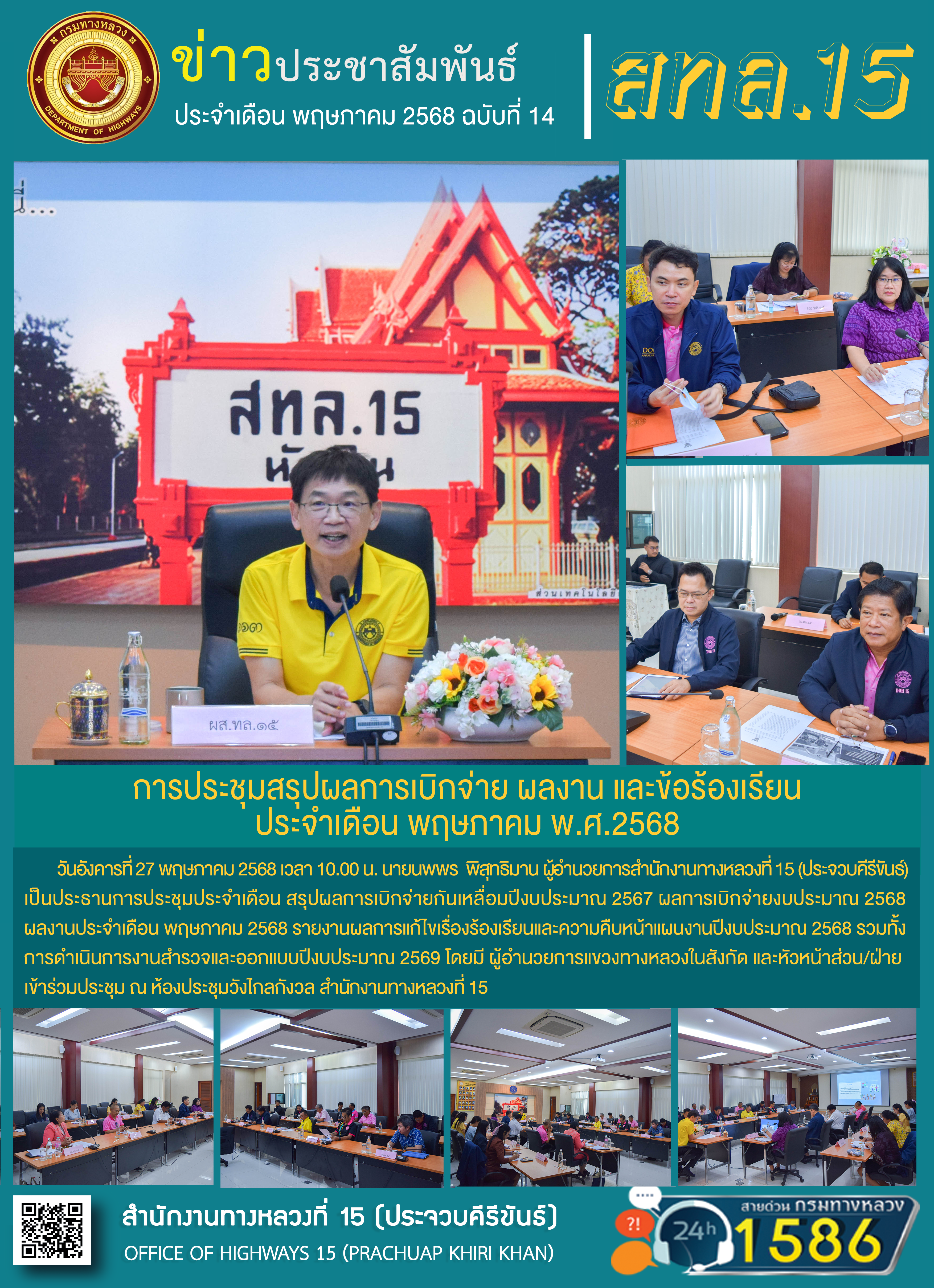 รายงานผลการดำเนินงานตามแผนปฏิบัติการส่งเสริมคุณธรรมจริยธรรมของสำนักงานทางหลวงที่ 15 ประจำปีงบประมาณ พ.ศ.2568