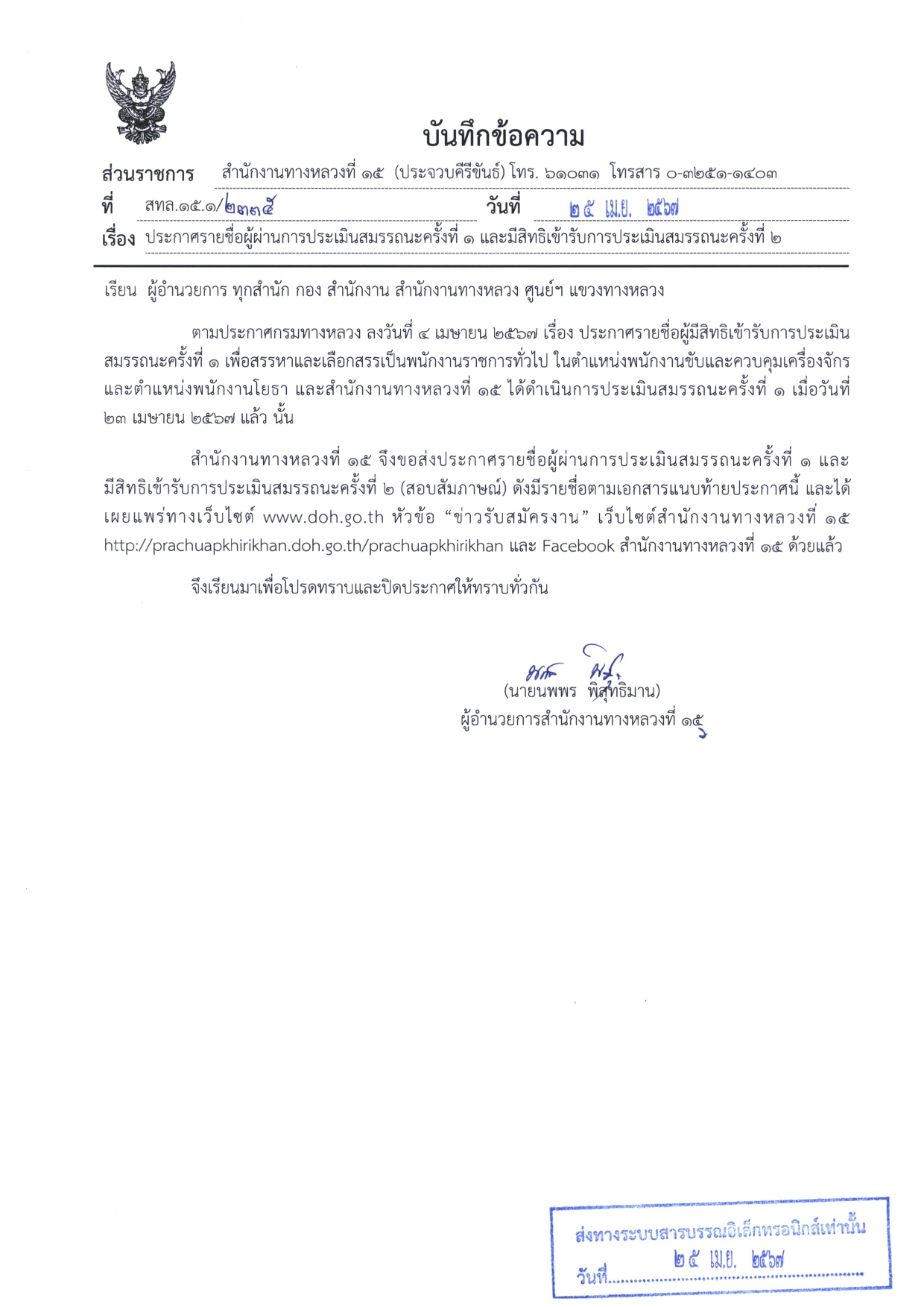 ประกาศรายชื่อผู้ผ่านการประเมินสมรรถนะ ครั้งที่ 1 และสิทธิเข้ารับการประเมินสมรรถนะครั้งที่ 2 เพื่อเลือกสรรพนักงานราชการทั่วไปจำนวน 5 อัตรา