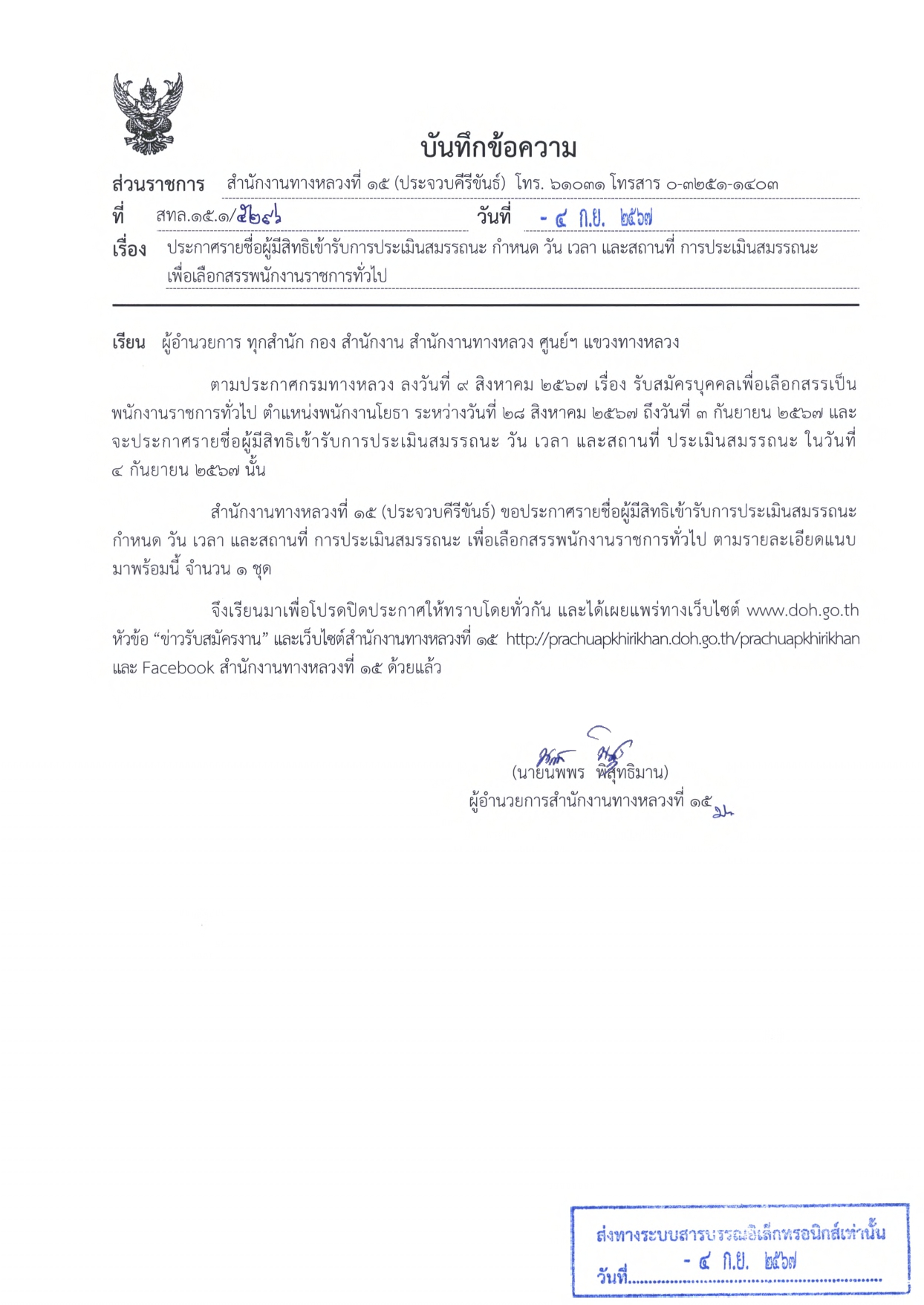 - ตำแหน่งพนักงานโยธา สังกัดแขวงทางหลวงเพชรบุรี จำนวน 1 อัตรา