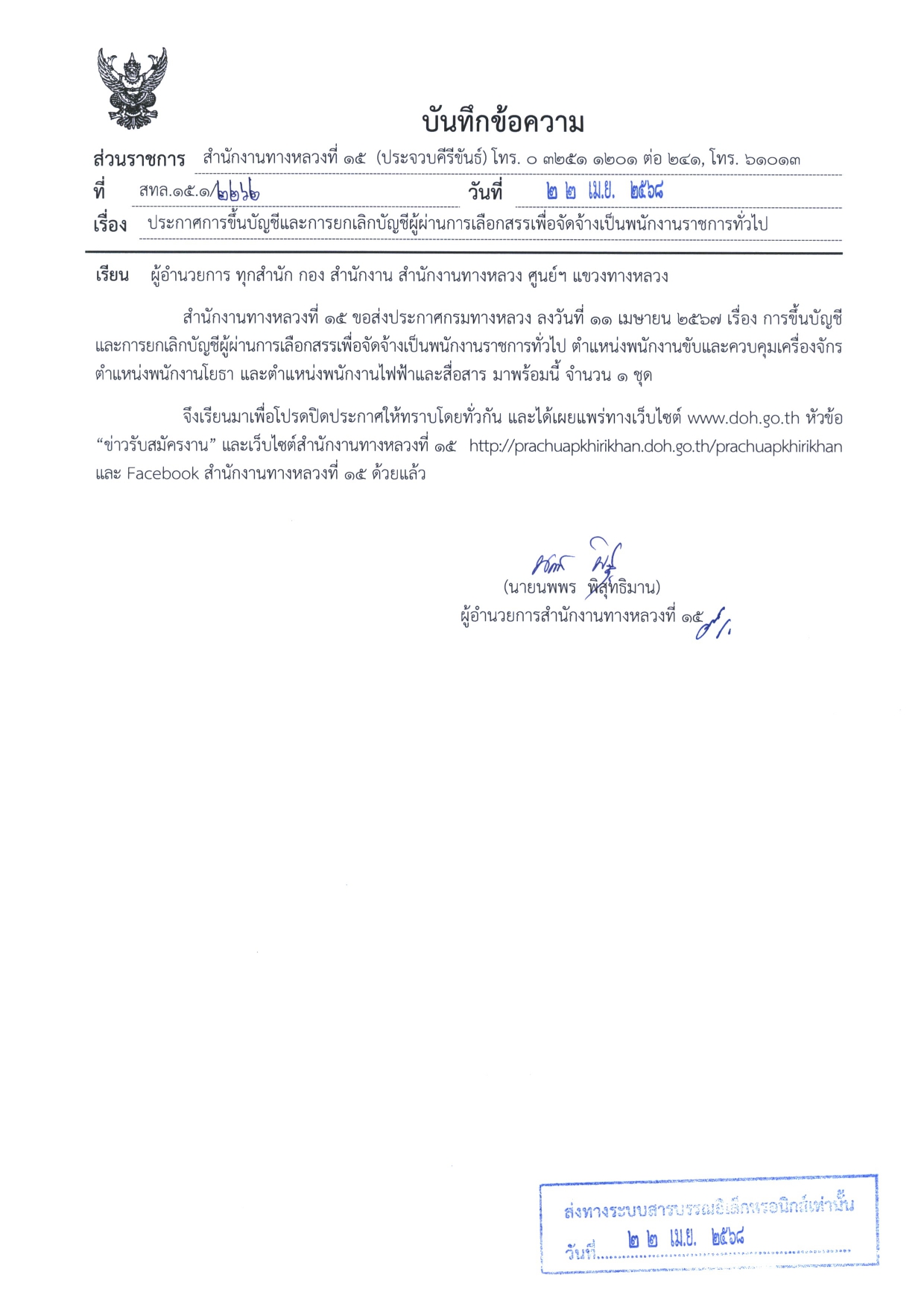 1. ตำแหน่งพนักงานขับและควบคุมเครื่องจักร สังกัดแขวงทางหลวงสมุทรสงคราม จำนวน 1 อัตรา