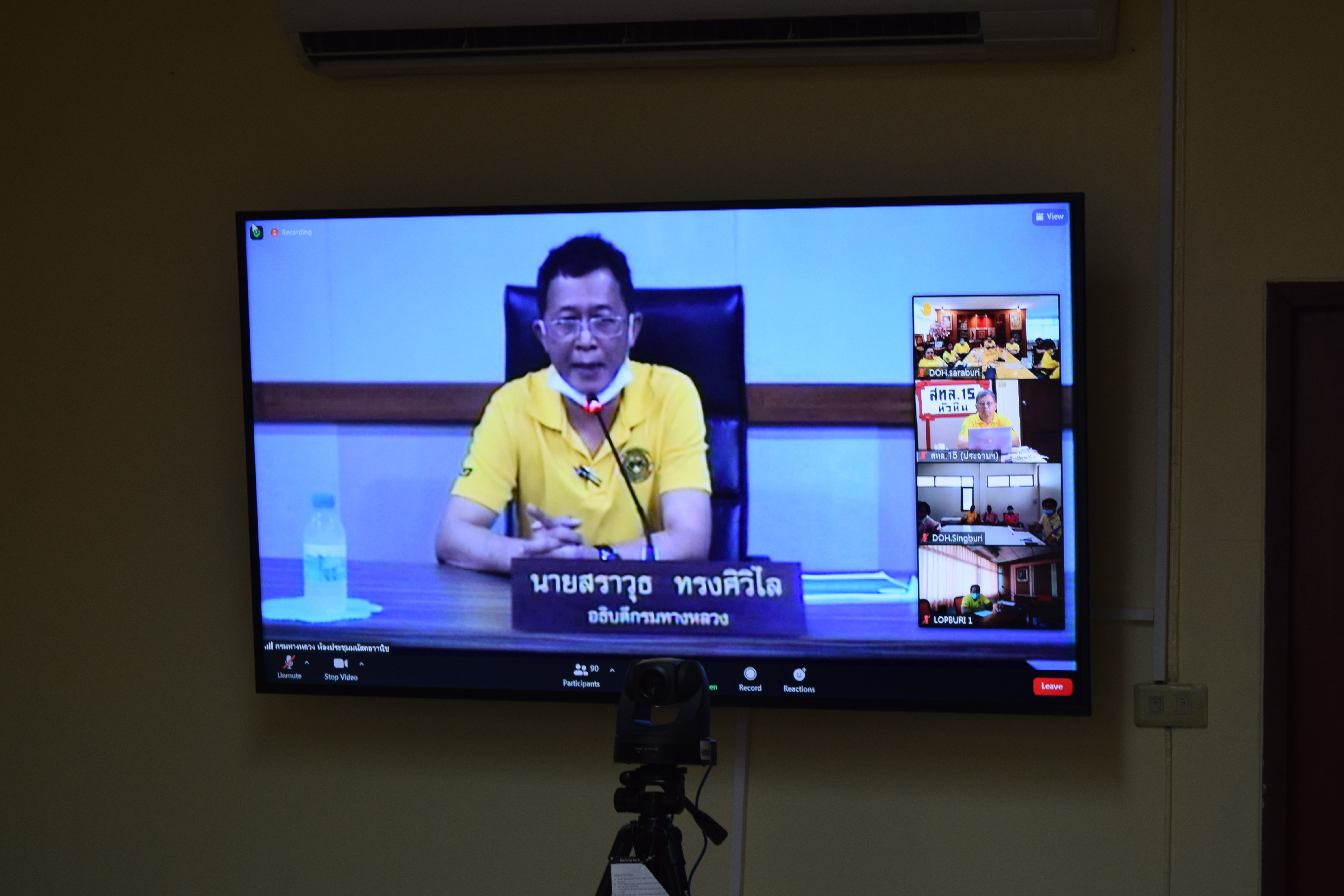 วันอังคารที่ 16 มีนาคม 2564 เวลา 10.00 น. นายสมพร รัตนบุรี ผู้อำนวยการสำนักงานทางหลวงที่ 15 (ประจวบคีรีขันธ์) นายพงศ์เทพ ทองพัฒน์ รองผู้อำนวยการสำนักงานทางหลวงที่ 15 นายนรงฤทธิ์ พรหมประดิษฐ์ ผู้อำนวยการแขวงทางหลวงประจวบคีรีขันธ์ (หัวหิน) และเจ้าหน้าที่ที่เกี่ยวข้อง เข้าร่วมประชุมเตรียมความพร้อมความเร็ว 120 กม./ชม. ผ่านระบบ Application "ZOOM" ณ ห้องประชุมชั้น 2 สำนักงานทางหลวงที่ 15 (ประจวบคีรีขันธ์)