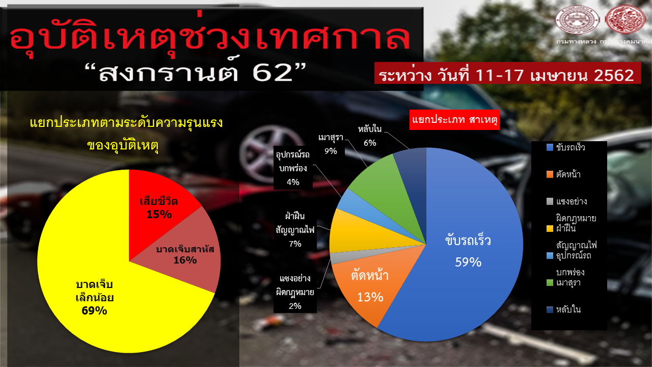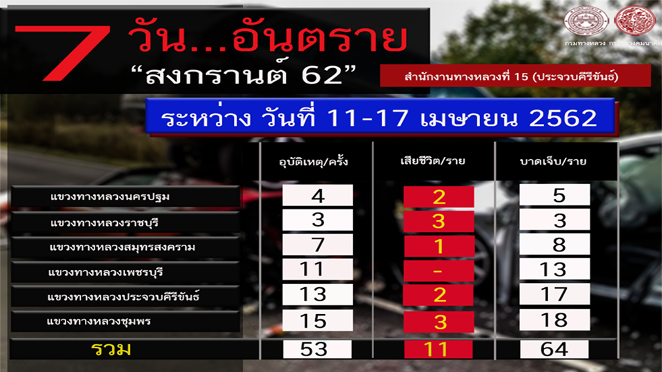 อุบัติเหตุช่วงวันสงกรานต์ตั้งแต่วันที่ 11 – 17 เมษายน 2562