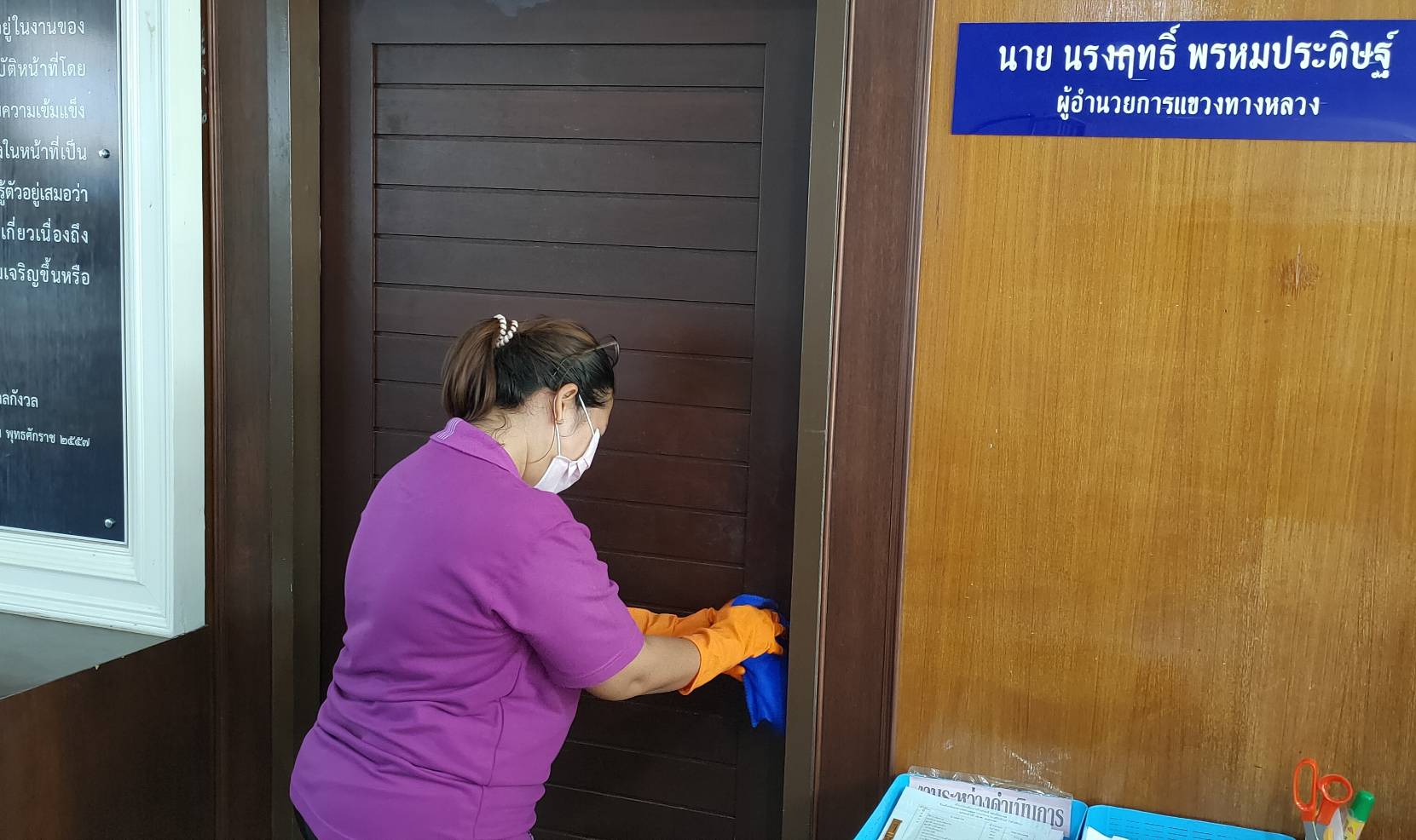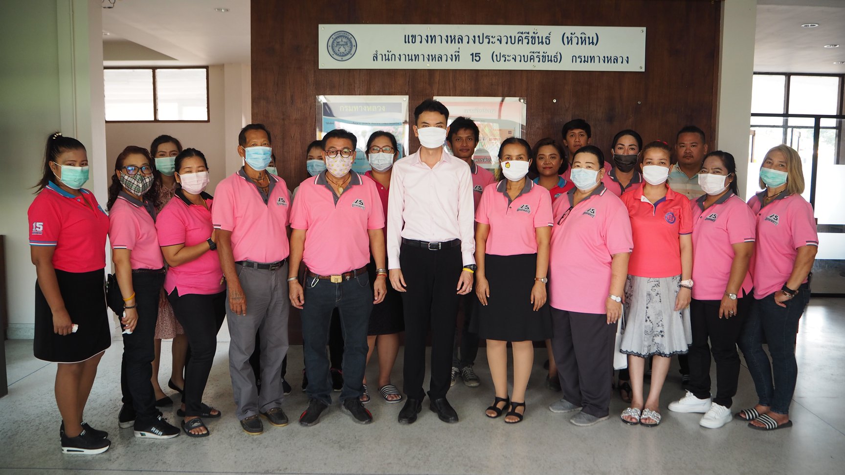 แขวงทางหลวงประจวบคีรีขันธ์(หัวหิน) นำโดย นายนรงฤทธิ์ พรหมประดิษฐ์ ผู้อำนวยการแขวงทางหลวงประจวบคีรีขันธ์(หัวหิน) ดำเนินการตามนโยบายของรัฐมนตรีว่าการกระทรวงคมนาคมและกรมทางหลวง ในการเพิ่มมาตรการคัดกรองสถานการณ์การแพร่ระบาดของ COVID - 19 โดยให้มีการทำความสะอาดบริเวณภายในสำนักงานและยานพาหนะที่ใช้ในราชการ พร้อมทั้งให้เจ้าหน้าที่และบุคลากรที่เข้ามาติดต่อราชการสวมหน้ากากอนามัย ตรวจวัดอุณหภูมิ ล้างมือด้วยเจลแอลกอฮอล์อย่างสม่ำเสมอ