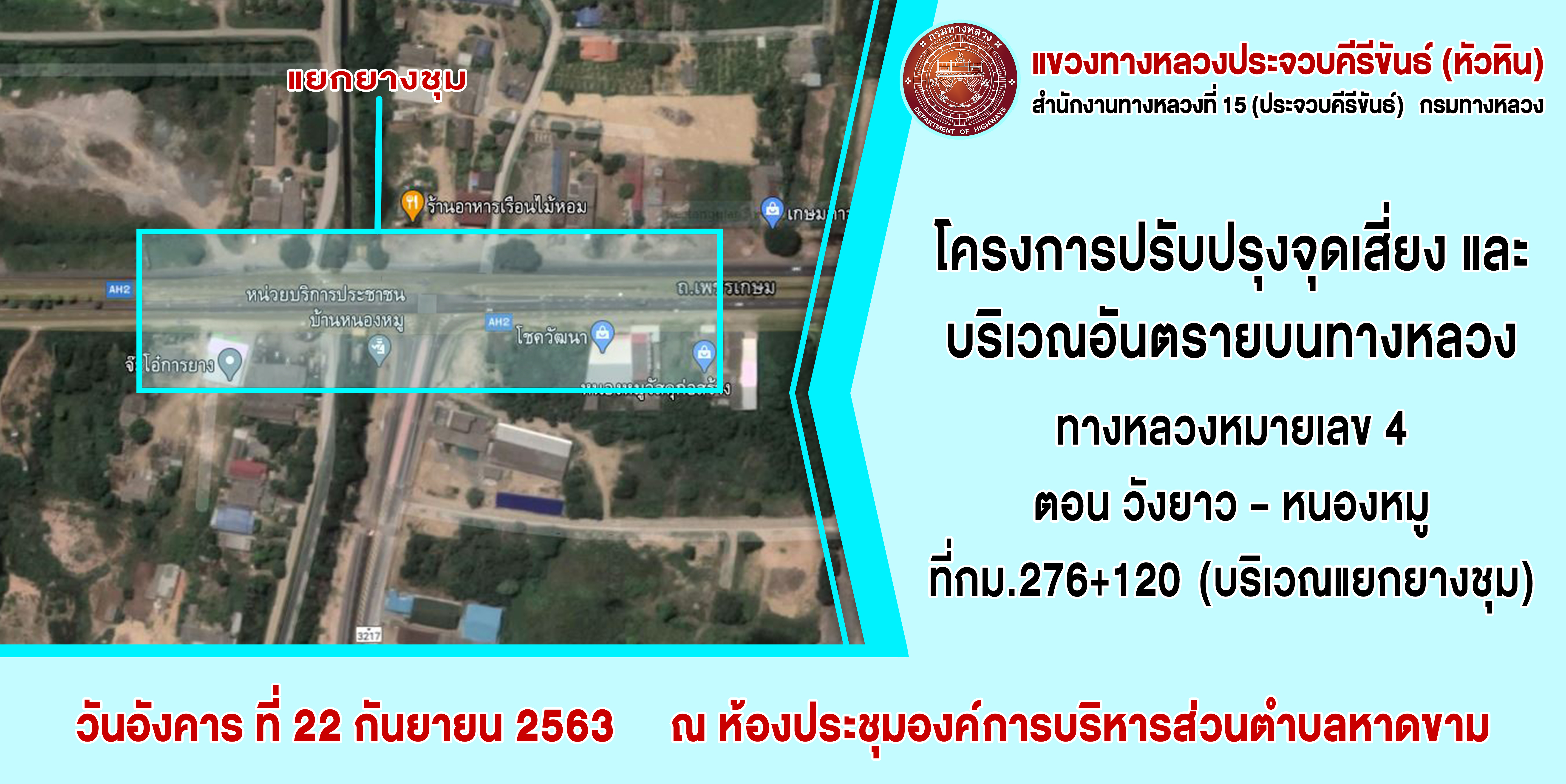 โครงการปรับปรุงจุดเสี่ยงและบริเวณอันตรายบนทางหลวง ทางหลวงหมายเลข 4 ตอน วังยาว - หนองหมู ที่กม.276+120 (บริเวณแยกยางชุม)