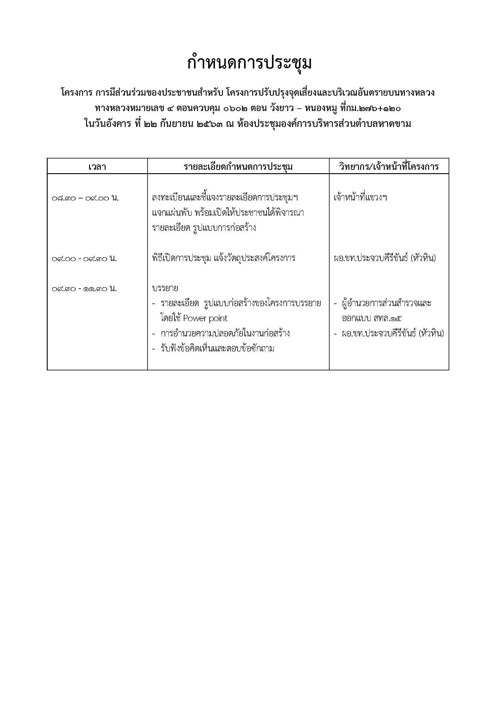 โครงการ การมีส่วนร่วมของประชาชน ณ ห้องประชุมองค์การบริหารส่วนตำบลหาดขาม